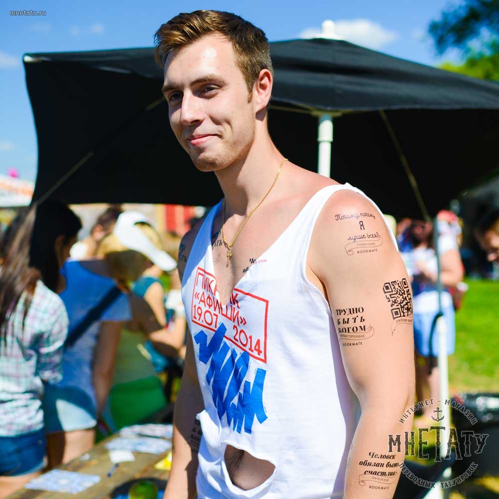Компания Bookmate по продаже онлайн книг и контента заказала производство переводных тату в виде цитат из русской классики для своей промоакции на фестивале "Афиша". Участники наносили себе временные тату, фотографировались для инстаграма и получали скидку на пользование сервисом Bookmate.