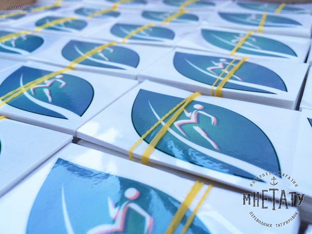 Для многотысячного забега от Сбербанка "Зеленый марафон" МнеТату изготовила на заказ партию ярких переводных татуировок с логотипом мероприятия, тысячи людей участвовали в забеге и наносили символ фестиваля себе на плечо.