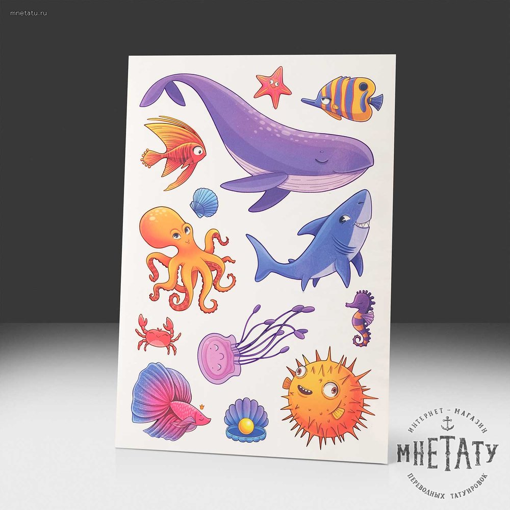 Переводная татуировка "Морская жемчужина" пропитана морской магией и красотой подводного мира. Она захватывает воображение своими изображениями морских животных.