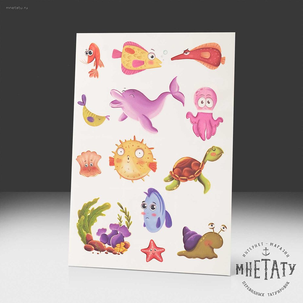 Набор детских переводных тату "Мульти-Море" приглашает детей на захватывающее подводное приключение в мире морских животных. На татуировках этого набора изображены веселые и милые морские обитатели в ярком мультяшном стиле.