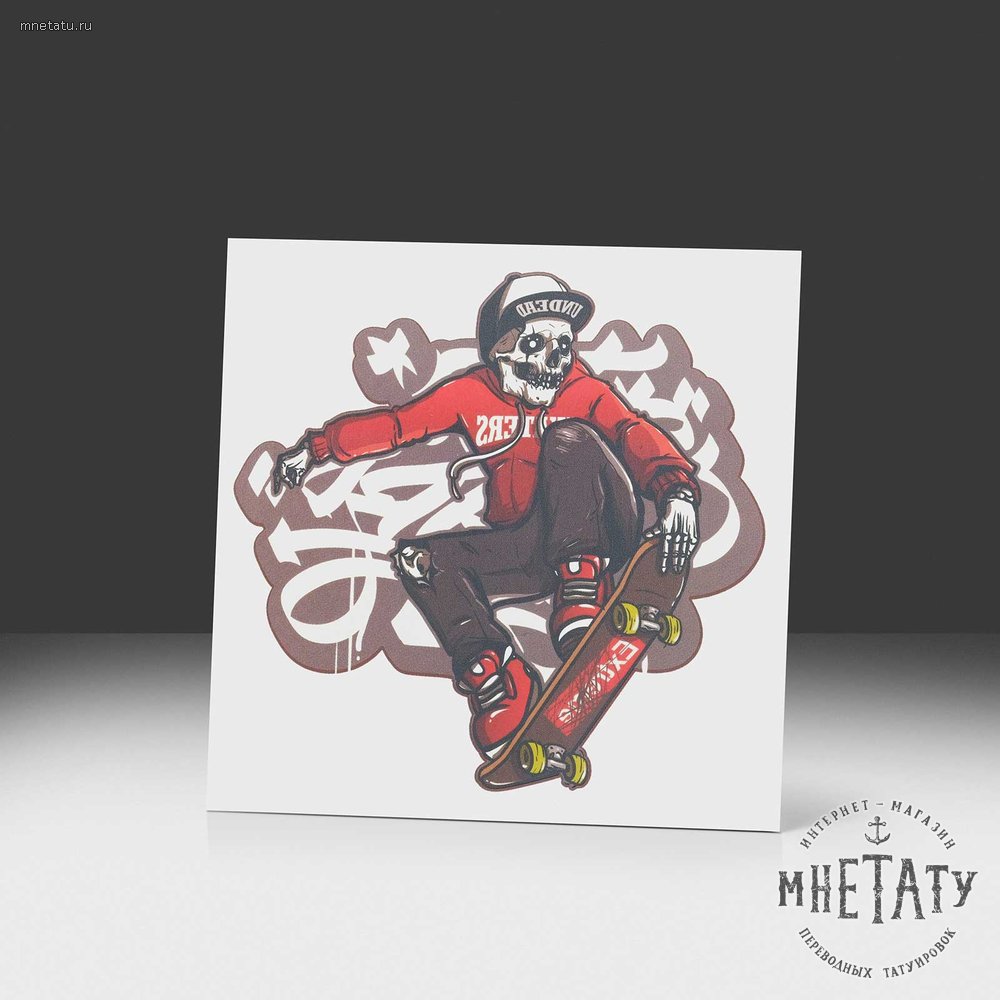 Начинаем с андеграунд-стиля и символа скейтбордиста. Татуировка сразу отдает образом легендарного Тони Хоука и той неподражаемой культурой, который был создан благодаря его влиянию. Рисунок больше знаком молодому поколению и последователям культуры «skate-g». Мастер показал символ с канонической стороны и передал это наилучшим образом. Татуировка не только для тех, кто любит экстремальный вид спорта, является «фаном» данной культуры скейтбордистов, а так же и тем, кто просто любит индивидуализироваться и нестандартно заявить о себе. Тату-мастер этим символом подстегнул интерес того, кто не «в теме», а так же воодушевил тех, кто до сих пор где-то в глубине хранит воспоминания о первых проблесках этого скейт-движения, начавшегося ярко с 1999 года. Рисунок выполнен ярко, контрастно — образ парня на скейтборде заставляет детально вглядываться во все детали. Судя по татуировке, парень готовится к трюку 360 flip (те, кто знает — поймут). Символ скейтбордиста — это дань культуре, это уважение к молодому поколению, это выражение «респекта» всем тем, кто не боится спорта и трудностей. Татуировка «Сейти-бой» — годный, детализированный рисунок. Образ скейтбордиста — универсален, подойдет любому. Работа мастера салона «МнеТату» вновь заслуживает внимания как татуировка, раскрывающая забытую историю и подчеркивающая ту важность, которая принесла с собой культура.