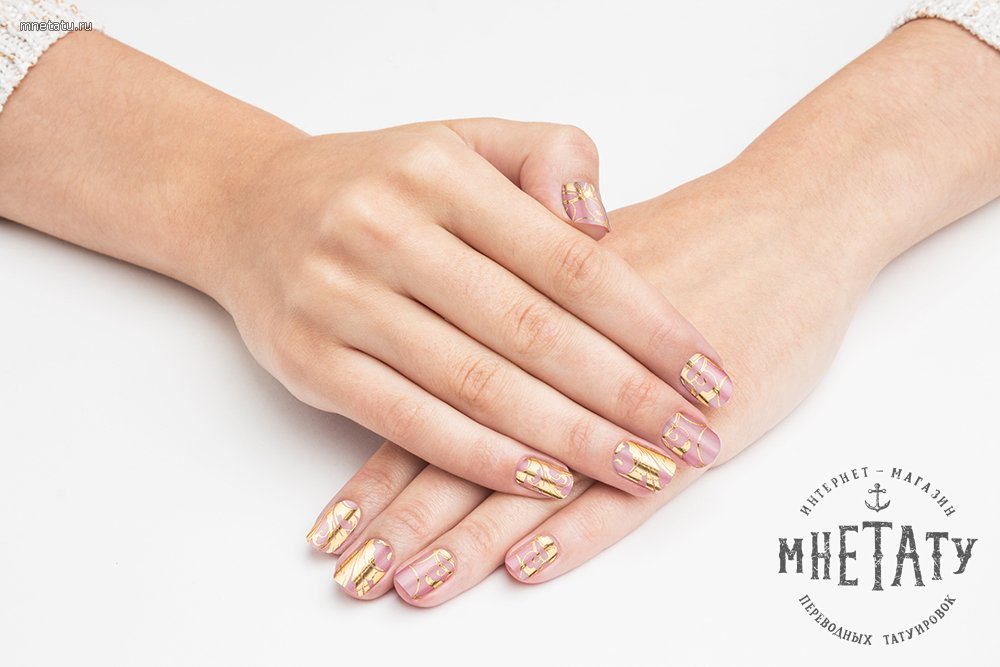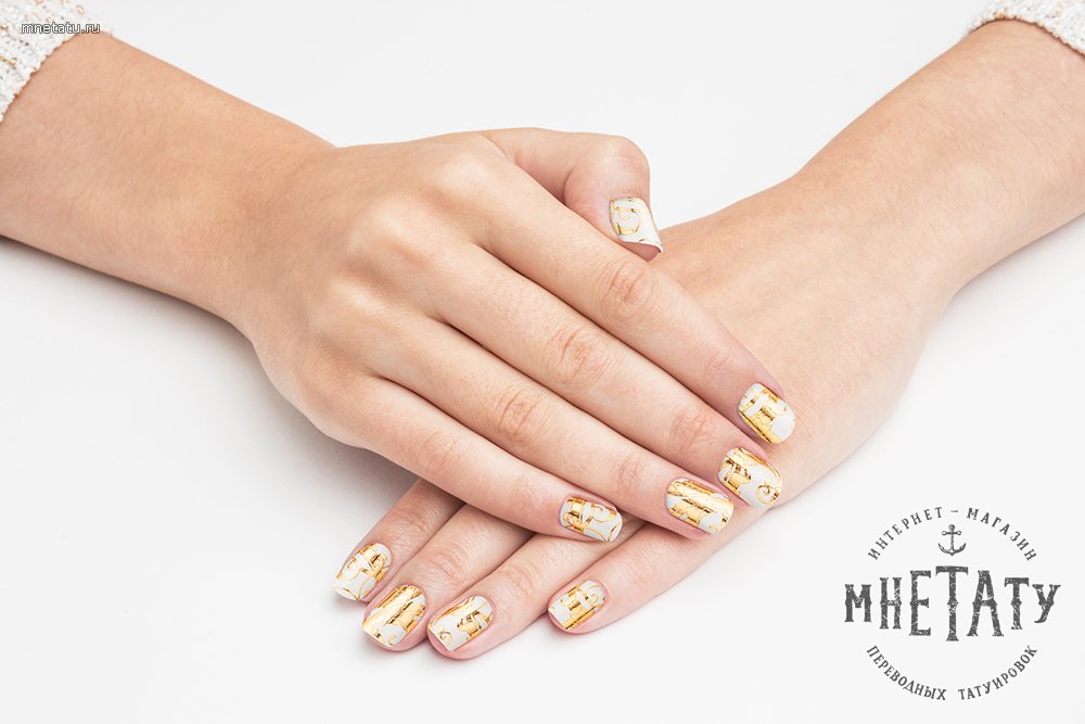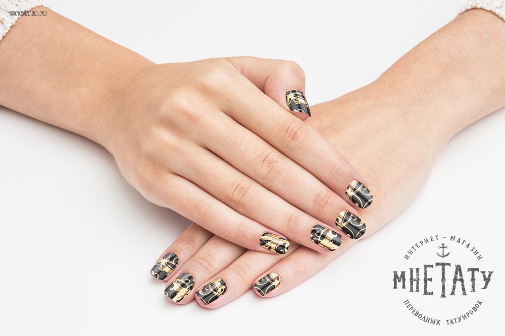 Наклейка пропитана позитивом и хорошим настроением. Тату изображает королевский узор, способный привлечь к себе максимум внимания окружающих. Несмотря на то, что рисунок выполнен всего в одном цвете, он является безупречным и достаточно ярким. По сути узор не является изображением короны или еще какого-либо элемента, относящегося к принцессам. Главная его особенность – способность перевоплотить женщину в настоящую принцессу и сделать богатым ее внешний облик. Если было принято решение в пользу данного тату, то можно быть уверенным, что носительница такого маникюра не сможет остаться незамеченной.