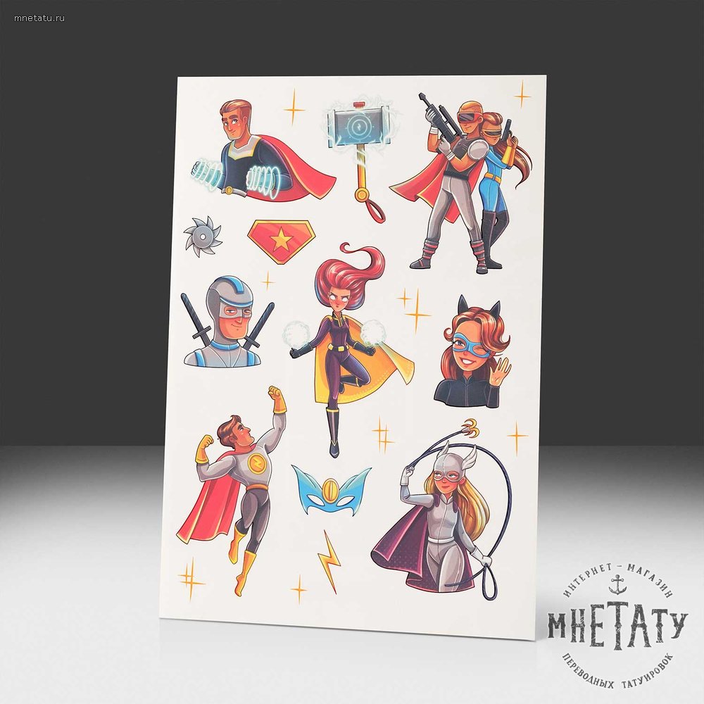 Набор переводных тату "Супергерои" - это не только великолепное украшение для детей, но и способ вдохновить их быть смелыми, справедливыми и готовыми помогать другим.