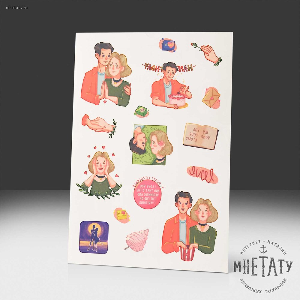 Набор переводных татуировок "Вместе" символизирует любовь и привязанность, важность взаимной поддержки и доверия в отношениях, а также радость и неожиданные моменты, которыми мы делимся с любимыми людьми.